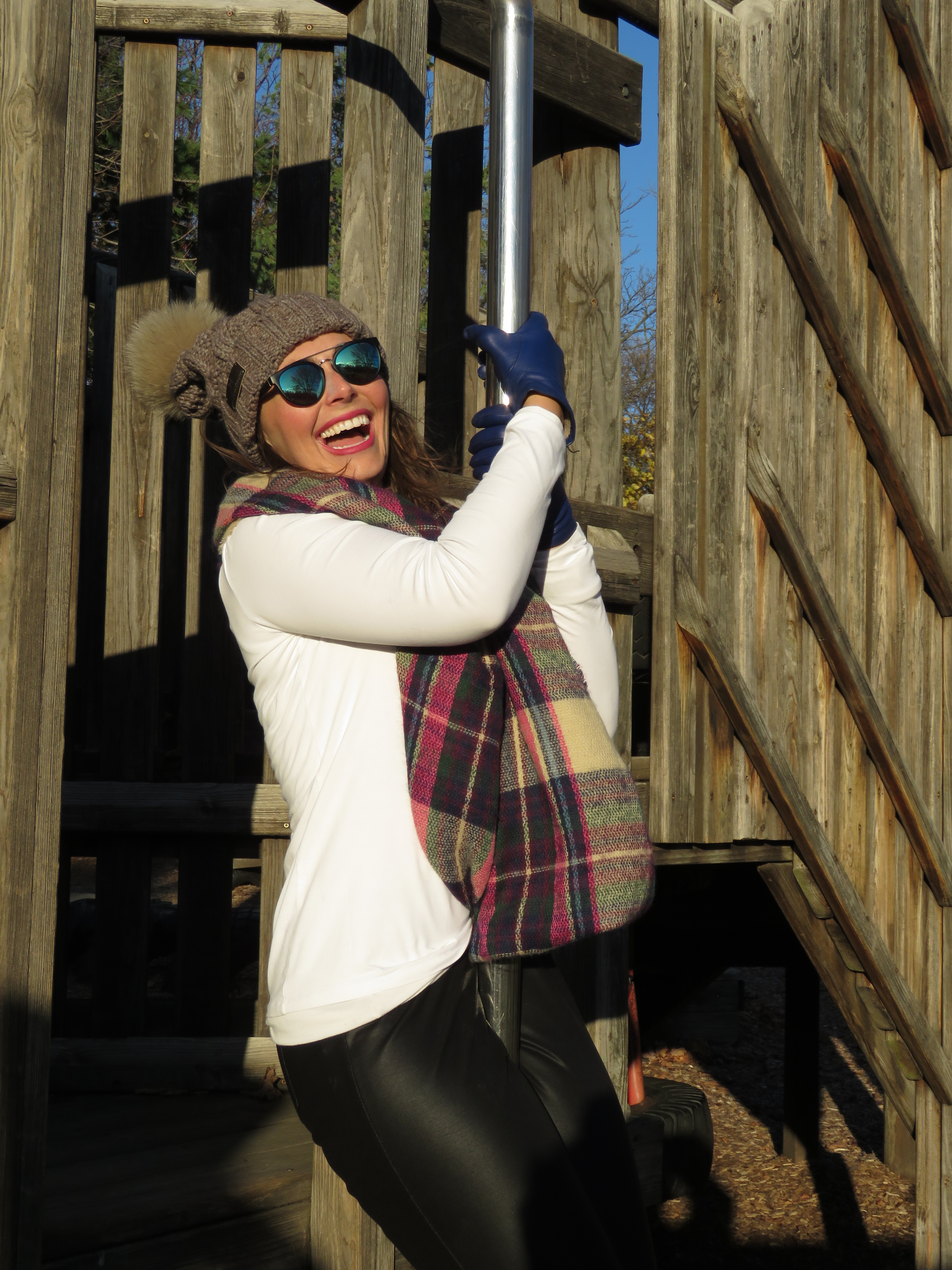 Jacket: J. Crew Gloves: Bloomingdales Booties: Old Navy Pants: Celebrity Pink Shirt: Gap Scarf: Art Effect Hat: from Germany Sunnies: Heavenly Couture