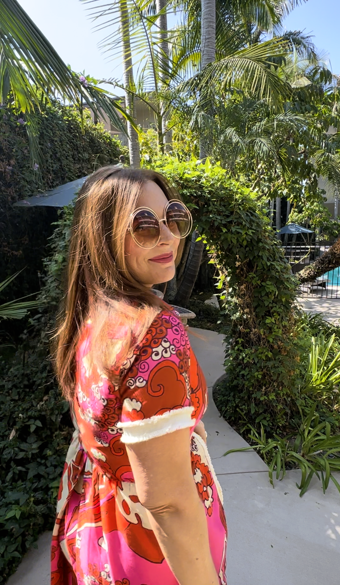 This is the look that keeps on giving. Giving compliments that is! This incredible jumpsuit (yes, there are pants hidden in there) is my most complimented look of ALL TIME. And not to brag, but I was voted Best Dressed in high school and studied fashion design in college, so I have been receiving compliments on my style for many years. I know, that may sound a bit conceited – and many people might wonder, “Sarah, why you need outside validation for you own fashion choices?” This is a compounded answer…