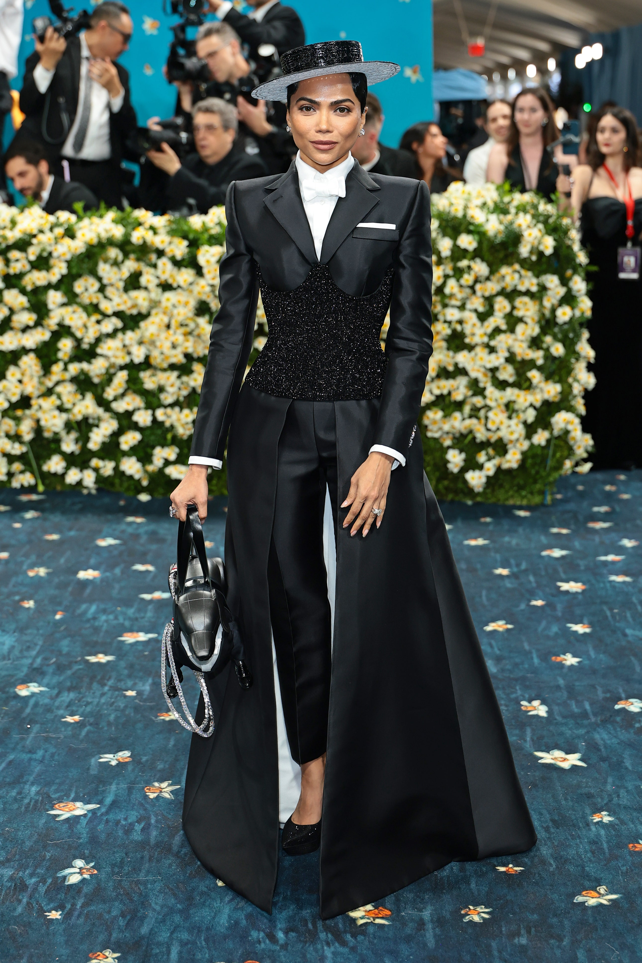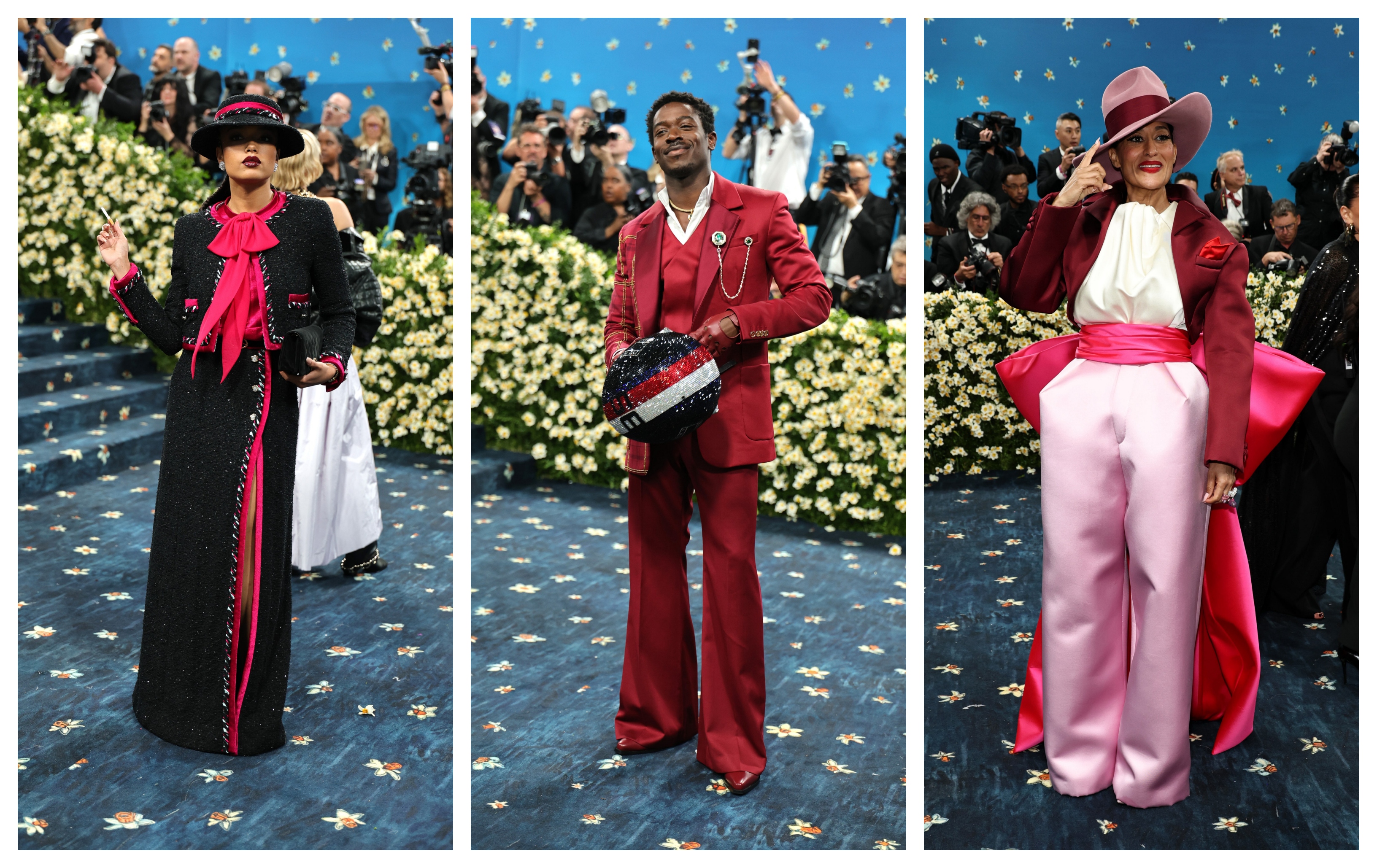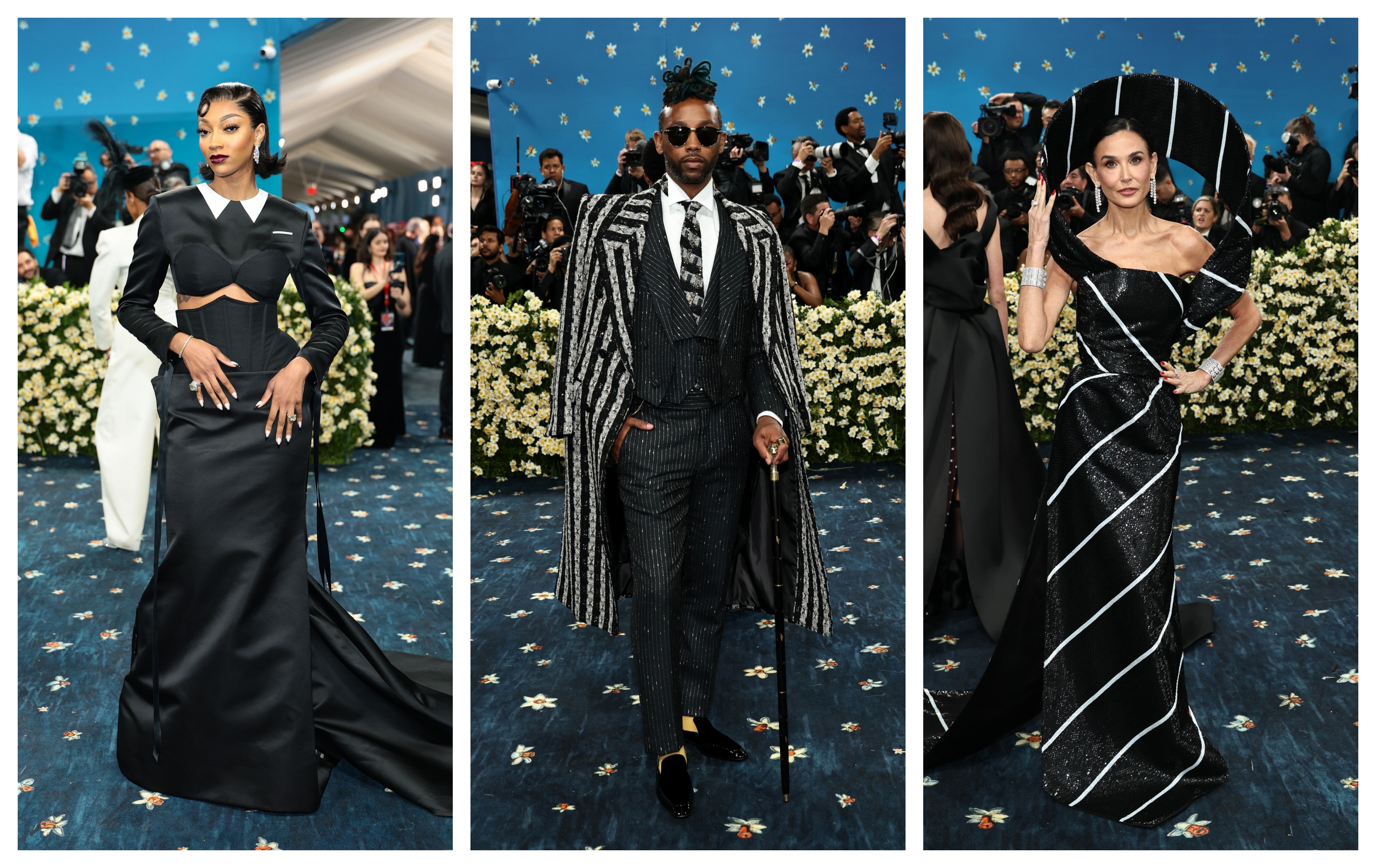 Joey King – I adore this over the top tailored suit. It elevates the theme while sticking with it.Alicia Keys & Swizz BeatzJodie Turner Smith – Tailoring leather is no easy feat, and this is done beautifully.Janelle Monae – Always nails the Met Gala theme.Teyana Taylor – Masculine dandy with feminine flair. Perfection. Bling and accessories were key to fine dandy fashion and she added all the right ones.Mindy Kaling – One of my favorite looks of the line. Simple but still elevated for the event, and flawlessly exectued.Andra Day – A pop of pink was fun to see among the sea of dark colors.Whitney Peak, Damson Idris, Tracee Ellis RossPusha T, Valentina Ferrer with J Balvin, Savannah JamesTessa Thompson – Such a unique silhoutte, with true homage to the dandy era, but a modern take. I love everything about it.Jeremy Pope (inspiration was about the structure of the garment and what’s underneath), Lana Del Ray, Tom FrancisMonica Barbaro – Mary Poppins meets the future, but in the most chic way possible. Focusing on tailorng, it’s impeccable. All the extra details are pretty perfect too.Zendaya – The girl can do no wrong when it comes to fashion. She understands every assignment. And so does her stylist.Zoe Saldana – Hard to see from the photo but the tailoring on this is like a glove on her body.Imaan Hammam – Proves that a covered up neckline and wide leg pants can be completely sexy when done right. Only miss for me is the divided toe shoe.Colman Domingo in Valentino – The true definition of a modern day dandy, in everything he wears. This is no exception.Jennie – It might seem like a straightforward play on the theme, but it’s constructed to perfection and is gorgeous from every angle. The ladylike version of a dandy.Lauren Amos – This shows the underbelly of the garmet and the final project. A testament to the labor that goes into creating a beautiful piece of clothing. Bravo. Makeup and hair color are a bit off putting, but for the beauty of the outfit, I’ll let it slide.Angel Reese, BJ Gray, Demi MooreMona Patel in Thom Browne – Somehow not flashy but so flashy all at once. One of the best looks of the night.Walton Goggins – A glimpse intoo the art of patternmaking. It’s not a simple task when it’s hidden, so showcasing as the look is tailoring at its finest.Dua Lipa, Jeremy O. Harris, Sydney SweeneyAngela Bassett – The silhouette is not only perfect but very unique. The accessories are spot on and the camera the best little accent.Simone Biles – A beautiful bold color makes her standout, as well as the embelleshiments on her gown.